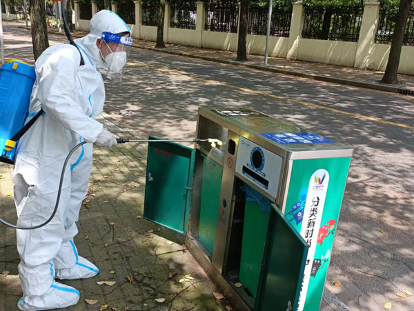 結合日常業務工作,工作人員還持續開展對道路廢物箱、公共廁所等環衛設施及城市家具的保潔和消殺工作。當天共安排20名專業消殺人員開展第5輪公共空間及設施大消殺工作。