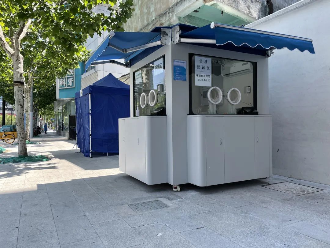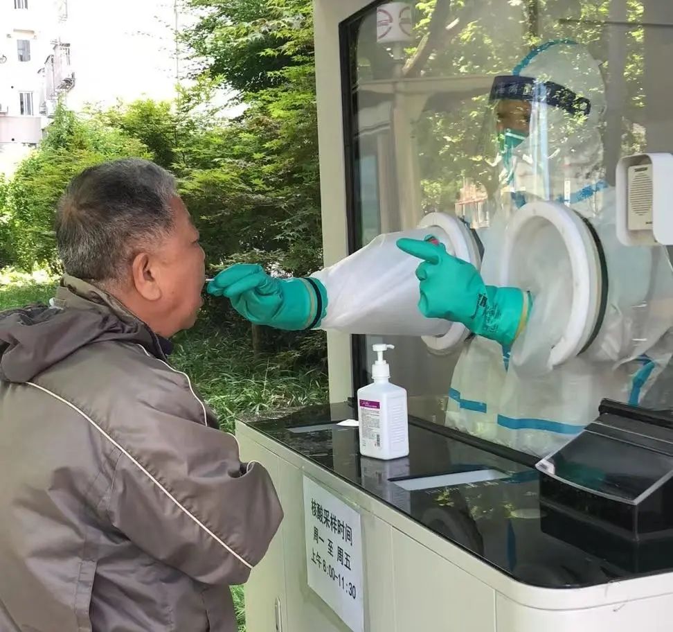 在普陀區牙防所旁的普陀區首個便民核酸采樣亭,從5月3日運行至今已采樣300多人次!安蓸油た梢杂行ПWo醫護人員和被采樣人員,避免交叉感染,安全性更高!逼胀訁^牙防所分管負責人介紹,采樣亭設置了兩個工位,亭內配有正壓新風系統、高效過濾系統、低壓報警系統,及紫外線燈等,為醫護人員安全采樣保駕護航!巴ぷ舆有轉軸式傳遞窗,醫護人員掃碼貼標完畢,就可以將采樣管和棉簽一鍵傳遞至亭外!逼胀訁^牙防所采樣護士萬佳樂說,傳遞窗可以大大減少醫護和被采樣人之間的感染風險。不僅如此,醫護人員采樣完畢后,可將采樣管和棉簽直接投入隱藏式試管區和隱藏式醫廢區內。