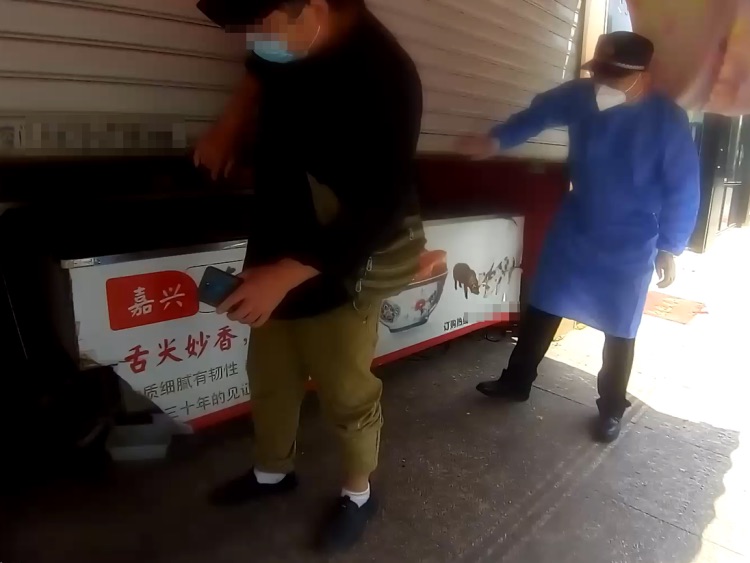 同日上午,顧村派出所根據前期查處無電子通行證騎手時獲得的線索,對轄區內一閉門經營的肉鋪開展突擊檢查,當場抓獲2名犯罪嫌疑人。經查,犯罪嫌疑人趙某剛和妻子趙某榮,在疫情封控期間通過閉門經營方式經營自家的肉鋪,將囤積的豬肉加價1倍后向周邊小區售賣,并安排無電子通行證騎手或自行違規配送。