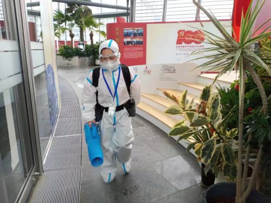 上海中心從制度、人員、物資等方面著手積極籌備復工復產工作,細化完善《復工復產保障方案》《復工復產防疫工作指引》等有關方案,盡量把工作做在前面。及時規范完成大廈各公共區域、后勤區域和電梯廳等重點場所的清潔消毒,確保環境安全萬無一失。