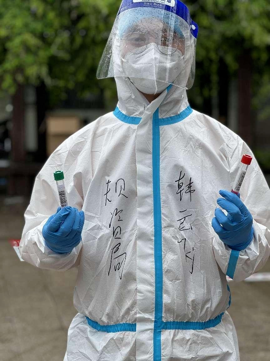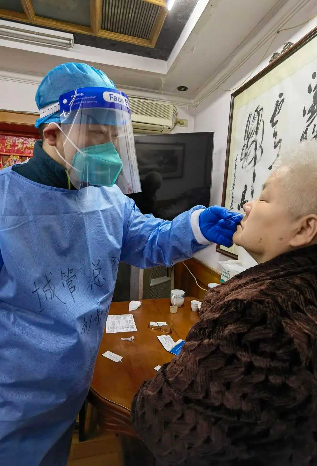 上海市城管局執法總隊劉智升上門為患病居民做抗原。