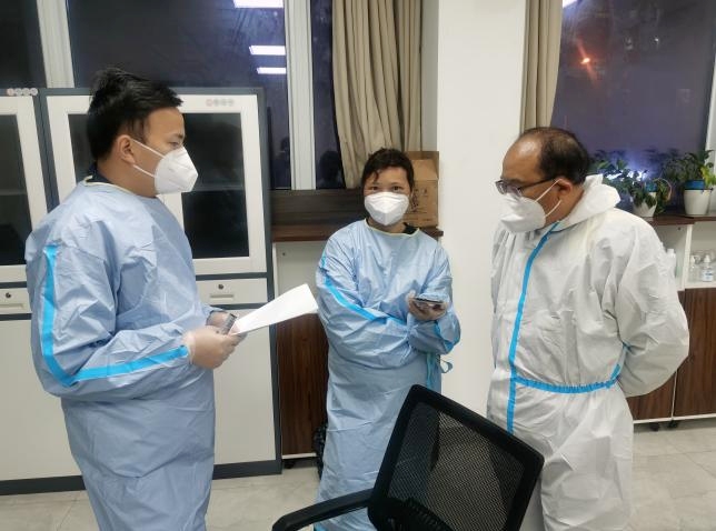 為了搶時間,各個點位的采樣團隊都開足馬力,先完成的馬上支援其他組,接力賽持續了一整夜,早晨7點,趙劍從辦公室走出,去往鎮政府的路上,忙碌了一夜的采樣團隊陸續返回。