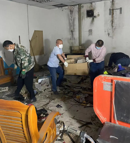 在完成基建工程的修整后,施工面臨的首要難題是要及時解決用電需求!耙驗槲覀冋i_展檢測工作需要380kv工業用電,但是這邊只有照明用電,是遠遠不夠的!备吨矂傉f。通過區、鎮各部門的協調,平常需要2到3個月完成的供電作業,在應急情況下,這次很快就完工了。