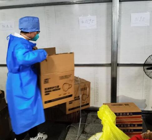 生活物資保障的重任落在了汪鑒昊和姚詩琦兩個小伙子肩上。他們義不容辭地當起了“餐飲大總管”,負責集中隔離收治場所內所有人員的一日三餐對接工作。既要照顧好病人的營養健康,又要負責好工作人員的能量補充,這項日常工作繁重且瑣碎,不容有一點懈怠和馬虎!拔覀儗τ刑厥庖蟮幕刈寤颊呒袄先趸颊哌會每日標注,做好安排!泵刻旖5000人份的餐飲發放,按時按量、周而復始,他們照顧好了所有人的“胃”,卻在忙碌后常常忘了自己。