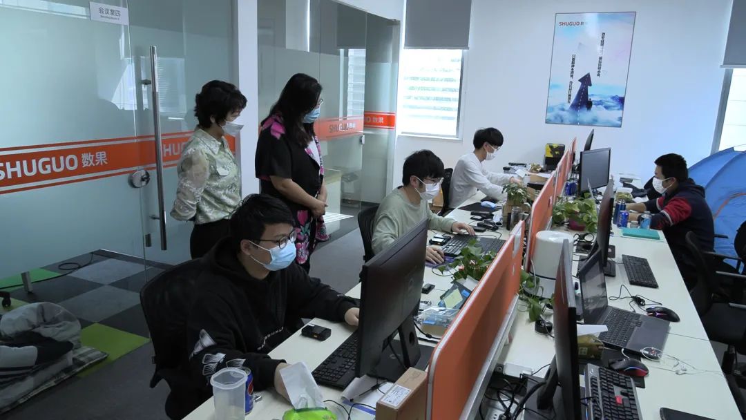 記者來到位于移動智地園區內的上海戀軒實業有限公司,工作人員有序分工,在做好疫情防控的同時,有序復工復產,呈現出忙碌而有序的工作景象。工作人員告訴記者,4月中旬,園區企業服務部專人一對一指導企業資料填報、封閉期間防疫方案制定、辦公生活區域流線管理及相關物資配備。隨后由專人對接推動復工審批直至審批通過,并在獲批后第一時間安排企業入園復工,目前公司產能恢復了80%。
