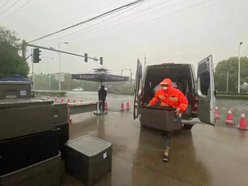 “飯送到了,接收!”5月2日下午約5點,上海松江九亭鎮九新公路集中隔離收治點,四名志愿者忙碌起來,每頓搬運300多套餐食,對管理保障組的7位退役軍人來說,這是他們的日常。