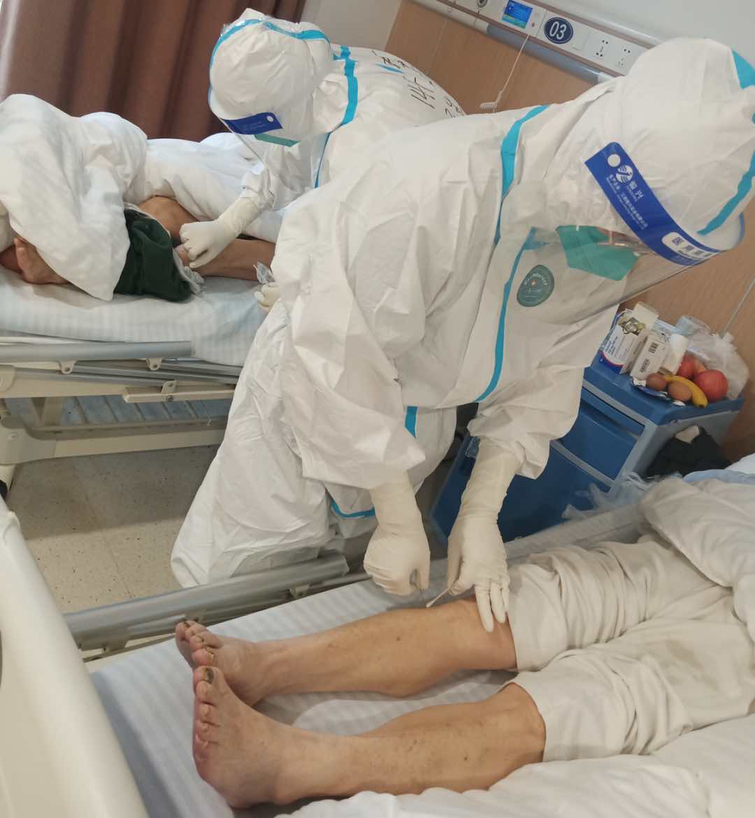 同時,考慮到收治的患者以中老年為主,普遍存在基礎性疾病,且有不同程度的焦慮、失眠等情緒問題。每天,兩位中醫科醫生還會走進病房,帶領患者開展“八段錦”中醫功法,為患者進行針灸治療。