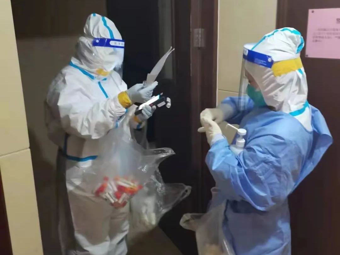 徐琴和居委干部們一起,分析研究核酸、抗原篩查,環境消殺,封控管理等工作。每次核酸采樣,他們穿著悶熱的防護服一干就是3-4個小時。采樣工作結束后,渾身濕透的他們匆匆吃了幾口飯,又換上新的防護服一頭扎進了樓內,繼續開展其他的工作。