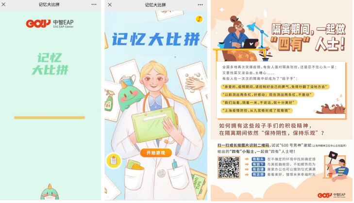 在突發公共衛生事件面前,中智公司所屬關愛通作為人力資源領域唯一一家入選的科改示范企業,積極發聲、主動作為,旗下中智EAP充分結合傳統心理咨詢熱線與智能化的科技手段,通過AI心理機器人“靜靜”、短視頻、H5小游戲等形式多樣的宣傳,為250多家企業的100多萬名員工提供了專業的心理科普、疏導及支持。疫情期間,中智EAP特別推出“疫情服務專案”,包含“7x24小時熱線、心理知識科普包、系列線上課程”三大服務內容,幫助員工穩定情緒,在特殊時期更好地平衡工作與生活;幫助企業快速上線員工關愛服務,向員工傳遞來自企業的關懷。