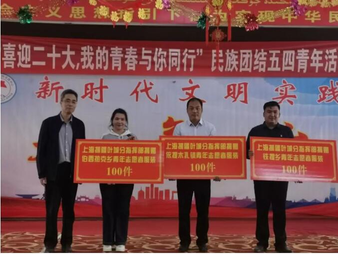 活動中,陳一峰代表上海援疆葉城分指向依提木孔鎮、鐵提鄉和伯西熱克鄉代表捐贈了青年志愿者工作服裝授牌。