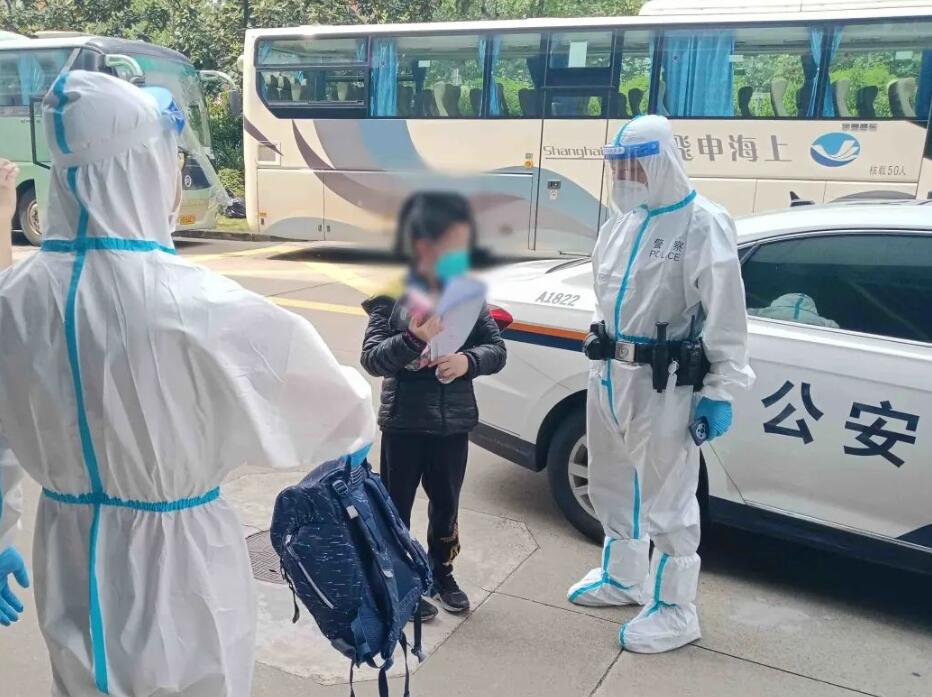 洋涇派出所副所長馬駿得知消息后,立即安排民警董愛民與轉運點工作人員進行對接,當小朋友到達源深轉運點后,第一時間安排專人照顧孩子。得知街道轉運車輛安排較緊張的情況,董愛民再次聯系所領導,在征得同意后,趕到源深體育中心門口,接到男童后將其安全送回了家。4月28日上午,洋涇派出所民警李澤和市局增援民警沈華也成功幫助一位解除隔離的4歲兒童順利返家。