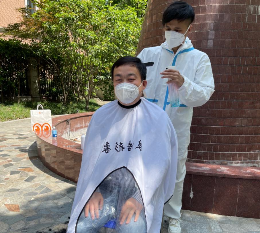 6位理發志愿者中,除了像許小姐這樣的熱心鄰居,還有兩位專業的“Tony老師”助陣,他們是居民區附近理發店的員工,聽到居委在尋找理發志愿者,第一時間主動報了名。
