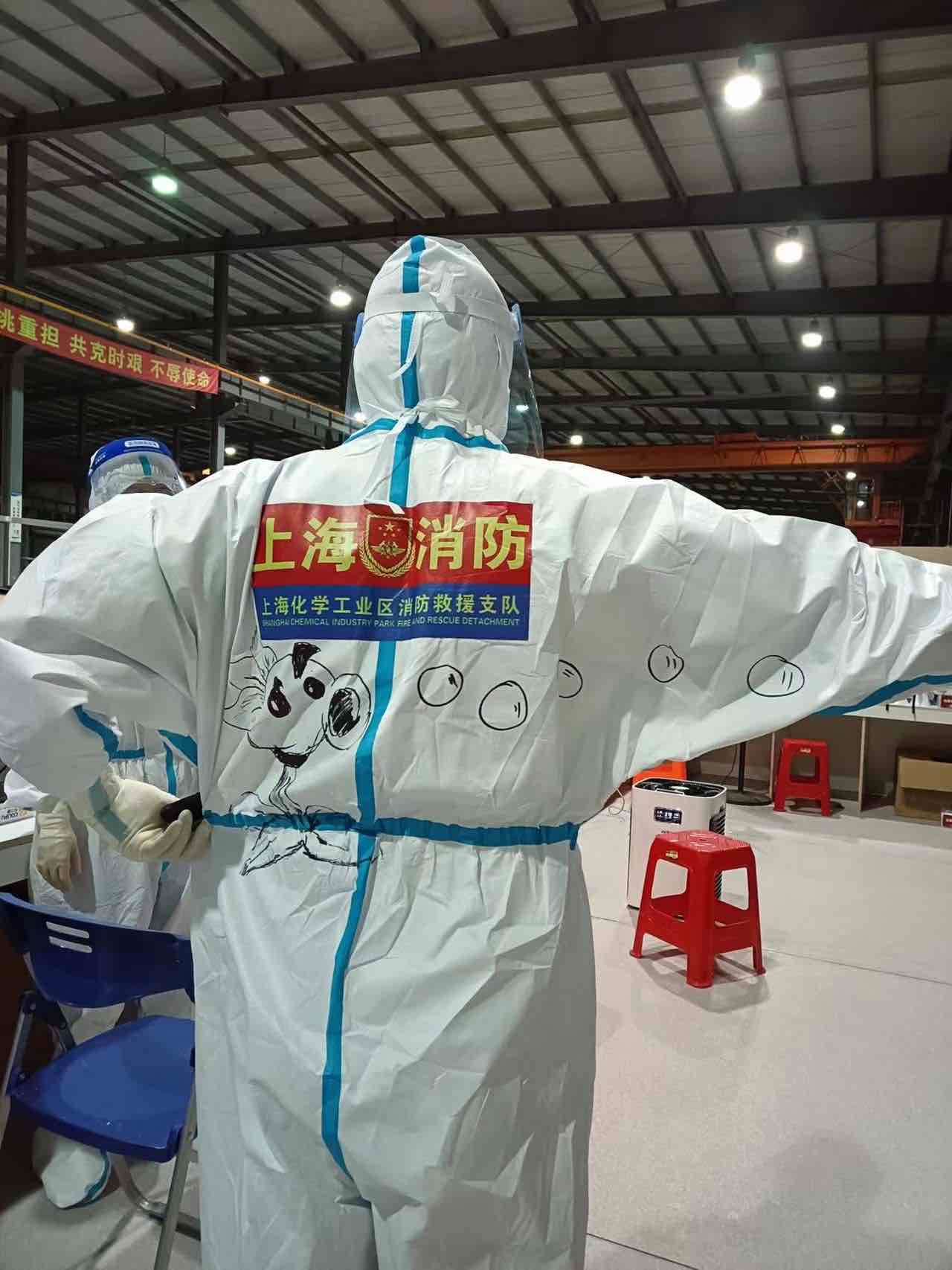 有一次,她在我同事的防護服上畫了一個豌豆射手,希望我們也能像豌豆射手打敗僵尸一樣,盡快打敗奧密克戎變異毒株。