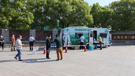 根據疫情防控要求,5月6日上午,金山區楓涇鎮開啟新一輪全員核酸檢測。早上7點多,在上海石庫門釀酒有限公司門前,一輛房車經過改造,“變身”成了亮麗又醒目的移動核酸采樣工作站,為周邊1000多位復工復產企業員工,提供方便快捷地核酸采樣服務!巴斓,之前去臨港三期核酸采樣點,路上加等候采樣的時間要近30分鐘,這里走幾步就到了,很方便!眮碜愿浇虾2势G實業有限公司的員工趙峰說。