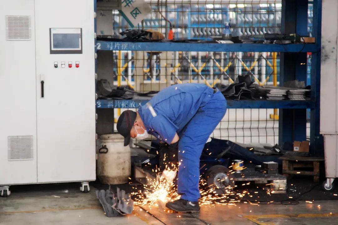 在上海凌云汽車模具有限公司生產車間內,3條生產線火力全開,機器設備轟隆隆高速運轉,戴著口罩的工人們正熟練地制造汽車模具。5月1日,該企業拿到了復工復產證明和《復工復產監督公示牌》,成為了華新鎮較早實現復工復產的制造型企業,如今已經恢復約8成的產能。