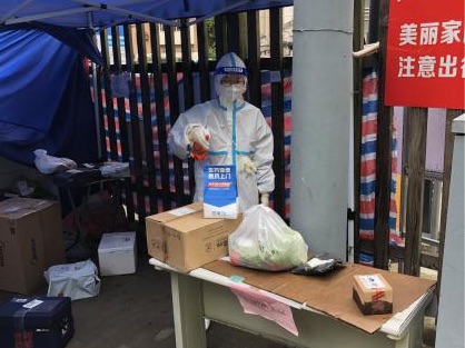 隊員們每天10:00-12:00和17:00-19:00用拖車將快遞運送到居民樓下,對于一些不會網購的獨居老人,黨總支也充分發揮老伙伴計劃的作用,以成員結對特殊困難群體的方式,通過上門探望、電話關心等,為他們送上老年餐,幫忙搬運保供物資,分發關懷大禮包。