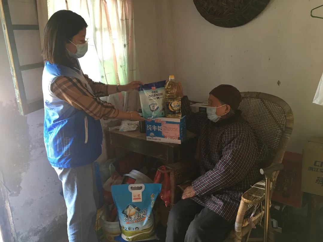 新黎村73歲的沈美華接過志愿者遞來的物資,高興地說:“這段時間子女都不在身邊,自己又一個人住,生活很不方便。幸虧村干部一直這么照顧我們,今天還送來那么多東西。真心感謝黨和政府能一直想著我們!”