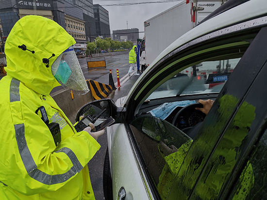 “警察同志,辛苦了!”駕駛員將車窗打開一條縫,鎮定地拿出一張市級防疫保障通行證揮了揮,“不好意思,趕時間!