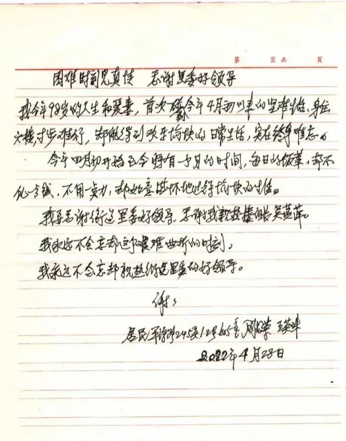 紙短情長!98歲老人手寫感謝信送到居委干部手上......