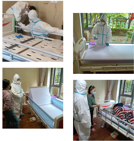 這樣的信息越來越多,團隊通過朋友圈,很快就收集到了170多位臥床失能、半失能老人的信息。經過與老人的家庭及居委會溝通,尊頤最終決定將在上海庫房尚未發貨的二十余臺“智能物聯翻身護理床”送給這些老人,解燃眉之急。送出的決定容易做出,但在嚴格封控當下,將產品送達老人的家里并安裝使用,可是非常嚴峻的挑戰,真可以用“一步一關”來形容。整個過程經歷了數不清的溝通、確認,經過了很多管理部門的批準,也獲得了很多熱心人士的“大愛支持”,最終得以順利實現。那位臥床老先生的女兒,全程視頻觀看工程師安裝調試,當她多日眉頭不展的父親在舒適的翻身床上,笑著跟女兒招手的時候,他鄉的女兒嚎啕大哭,現場安裝的小伙伴們眼中含著淚,也都欣慰且自豪地笑了。
