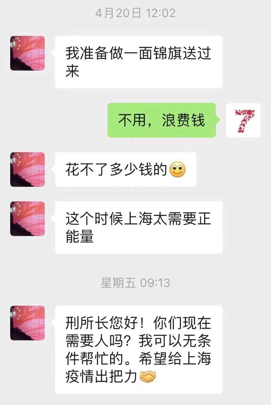 “邢所長您好!你們需要人嗎?我可以無條件幫忙。希望給上海疫情出把力”。