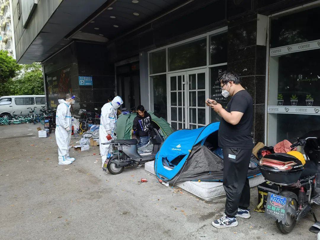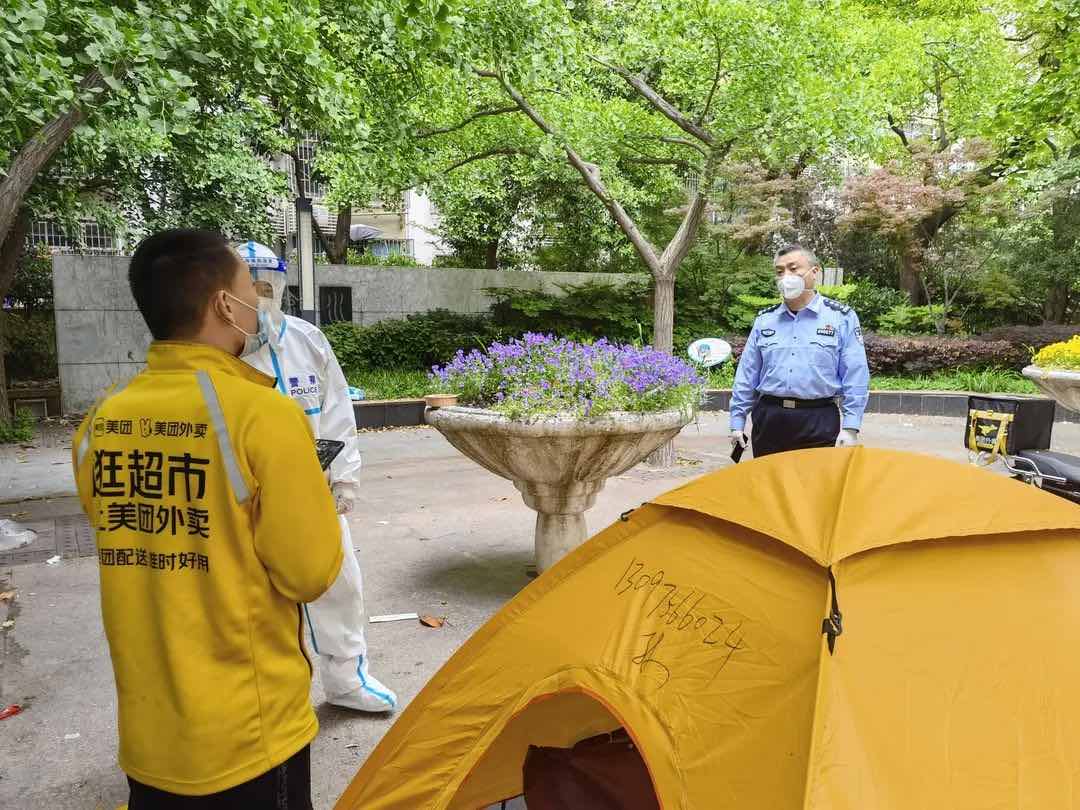 民警上前核查,發現這些騎手都有電子通行證,且每日都有做核酸檢測。這些騎手告訴民警,由于原來租住的公寓被列入封控區不能回去,為了接單方便,只能選擇留宿街頭。然而因為手機充電不便等原因,其中部分騎手其實已經無法接單了。從民警口中得知了“小哥驛站”的相關情況后,這些騎手立即打消了繼續留宿帳篷內的念頭,在現場做好抗原檢測后,在民警的指引下入住了就近的“小哥驛站”。