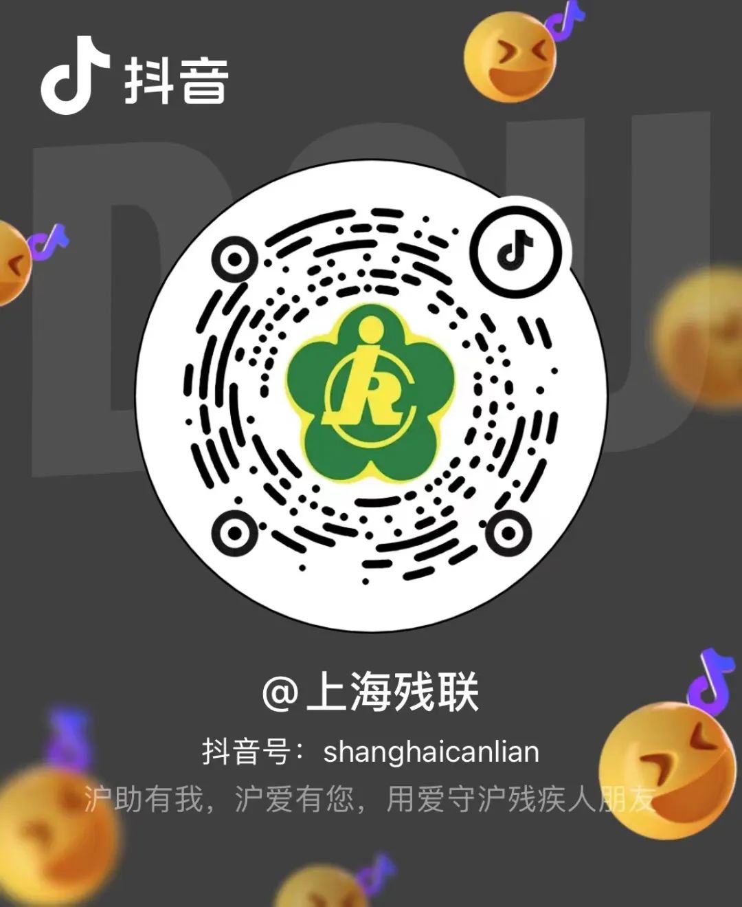 (2)打開“抖音”APP,搜索“上海殘聯”抖音賬號,點擊即可觀看,或保存下方圖片到手機相冊,打開抖音搜索頁掃一掃,進行觀看。