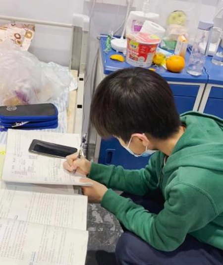 4月22日,小威可以出艙了,但按照規定,他隨身攜帶的課本都不能帶回家。班主任郭老師及時與學校溝通,由學校教導處提供電子版教材,供小威在家應急使用。同時,學?倓詹块T也多方聯系,很快,學校就備齊一套全新的紙質教材,為他快遞到家,保障了小威回家后的正常學習。
