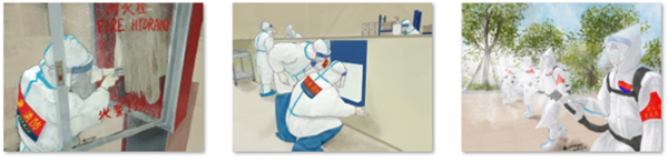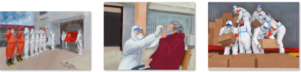 第五十二中學的美術教師潘馨瑤有感于疫情防控中的人和事,拿起手中的畫筆手繪抗疫漫畫,致敬最美逆行身影!拔易≡诮鹕絽^亭林鎮,當我從電視上了解到金山區的消防官兵,日以繼夜的奮戰在抗疫一線,就想為他們做些什么!迸塑艾幷f。