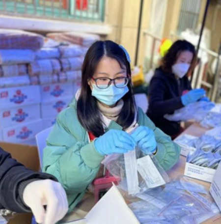 不僅如此,疫情發生后,潘馨瑤第一時間加入志愿者隊伍,奔走在社區防控一線。潘馨瑤說:“發放抗原試劑和掃描核酸碼看似簡單,但都需要極其認真仔細的態度,因為這些工作容不得半點差錯!