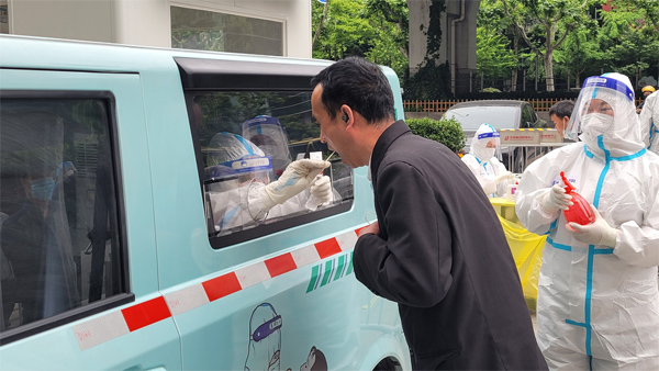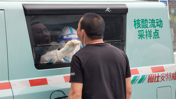 一位下樓做核酸的女士告訴小虹,以前做核酸要走一段長路,現在有了流動采樣車,直接停到樓下,自己做核酸變得非常方便。