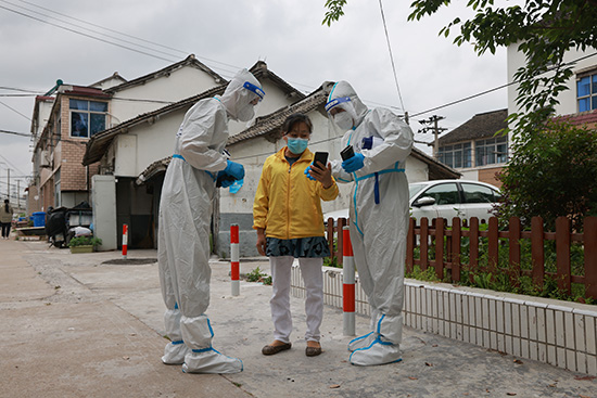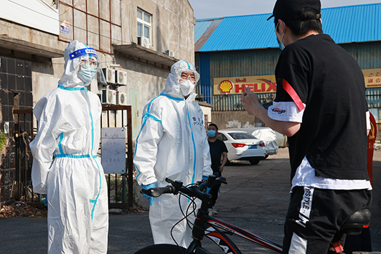 北蔡派出所社區民警張文虎今年8月即將退休,但當他知道所里需要抽調警力增援一線后,第一時間找到所領導主動請戰!拔沂巧鐓^民警,做了這么多年,如何有效與居民溝通我更熟悉!本瓦@樣,他和其他17名民警組成抗疫先鋒隊,穿著密實的防護服,逆行入駐北蔡地區的9個行政村,奮戰在戰疫的最前沿。