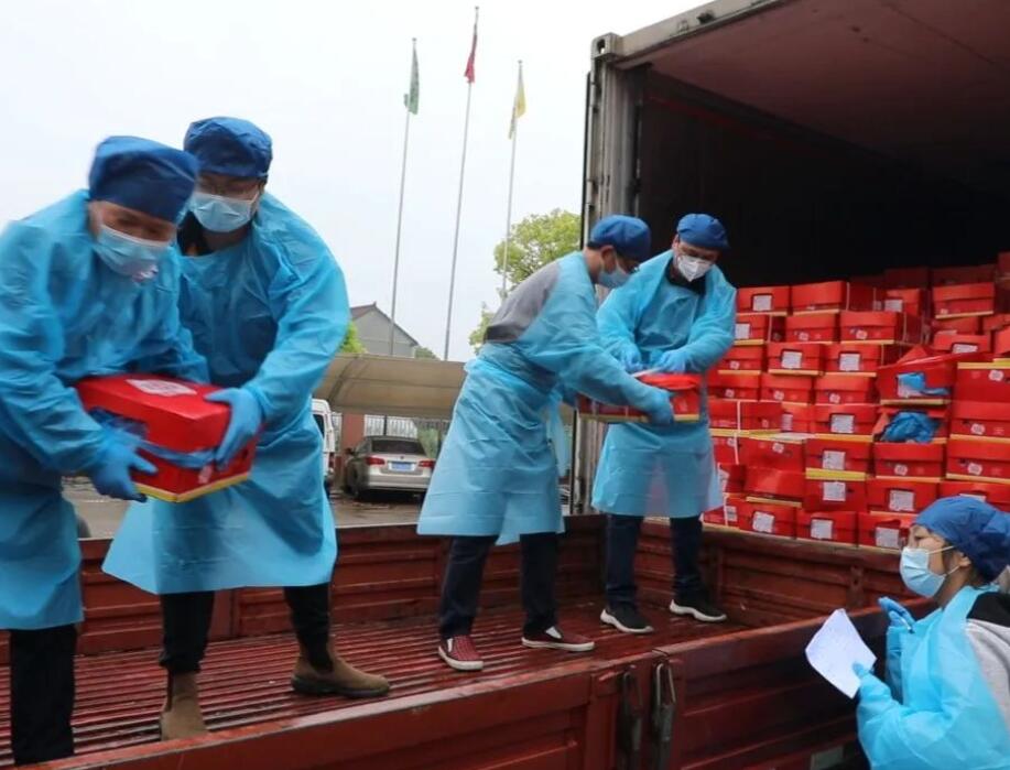 4月13日,下了一整天的暴雨。當夜色降臨的時候,雨似乎依舊沒有要停歇的跡象。連日來的輪番作戰,讓保供組的志愿者們身心疲憊。保供組成員嚴秀君剛剛結束掉手里的活兒,準備躺在行軍床上休息。突然,手機鈴聲響起,電話那頭傳來了宋慶豐急促的聲音:“小嚴,請你和小陸、小沈、小吳,馬上來物資集散點,有一批抗原試劑要緊急發放!”接到電話的嚴秀君和其他志愿者們立即從行軍床上爬起來,急急忙忙地就往集散點趕。她們到達集散點時,前來領物資的村居車輛已經等在場地了。嚴秀君和同事們迅速穿上隔離衣,化身“藍精靈”——清點、核對、分發、協助搬運。一番忙碌后,看著排隊領物資的車一輛接一輛地駛去,“藍精靈”們相視而笑。她們扭頭跟宋慶豐開玩笑說:“宋主任,我們的鞋都濕了,你是不是也能物資保供一下?”