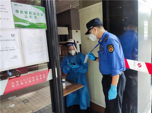 為了加強街面巡查保障,莘莊鎮組織執法隊每日兩次巡邏,逢門必敲。除了確保店鋪人員不私自外出,不私自開門營業外,執法隊員對保供商戶落實閉門營業情況進行核查,仔細告知相關防疫工作要求,并查看店內工作人員核酸、抗原檢測及店內每日消毒記錄情況,督促商戶規范落實疫情防控各項要求,確保群眾物資供應和健康安全。