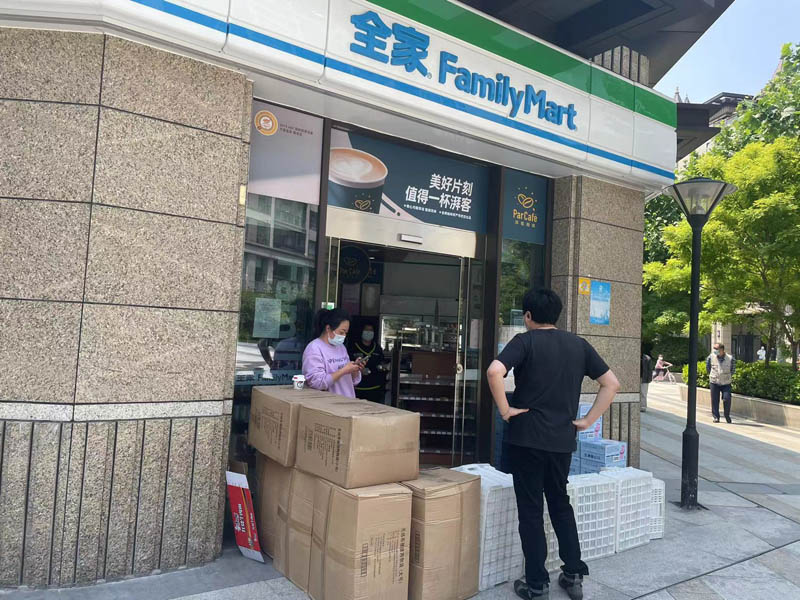 5月16日,浦東新區錦繡路一處全家開門營業,附近居住的市民可以在該店實行無接觸式購物。陳晨攝