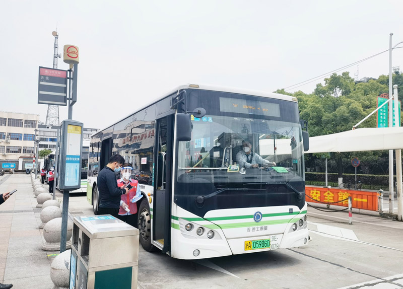 5月16日,崇明區城橋鎮,城橋1路、城橋3路、城橋5路公交車已恢復運行,市民有序掃碼乘車。國珊珊攝