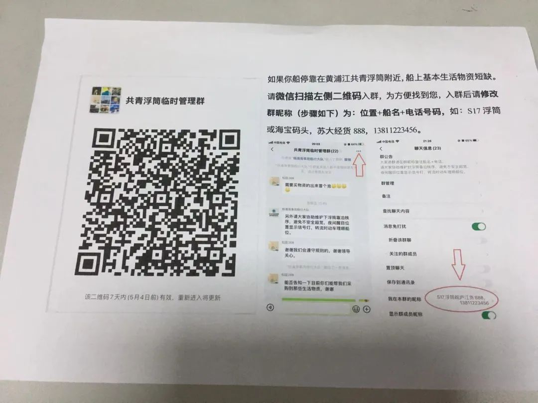 這次的“燃眉之急”解決了,之后怎么辦?“群眾的急難愁盼就是我們的心之所系”,帶著這樣的想法,大隊值守的海事執法人員索性義務做起了水上“團長”,為漂泊于黃浦江上的船員們組建了一個保供物資團購群。