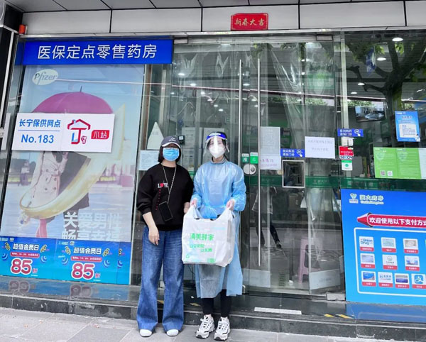 5月13日晚上7點多,中山居民區黨總支書記馬俐接到了轄區內一位90多歲老人的求助電話, 由于突然腹瀉,老人急需使用黃連素止瀉,“這位高齡老人不會使用智能手機,如果我們幫忙通過平臺下單,配送也需要一定時間,但老人在電話里的語氣顯得很著急!薄拔液鸵患宜幍甑呢撠熑擞新撓,可以問問看這家店能不能開通綠色通道,讓我們去現場買到藥!焙鐦蚪值老鲁粮刹宽棔运C當即表示可以聯系附近的“寧聚里小站”國藥控股國大藥房上海連鎖有限公司中山西路藥店負責人。確認該藥店有老人需要的藥品后,馬俐第一時間趕到藥店買到黃連素,再由居委干部接力送到老人手里,為老人解決了燃眉之急。