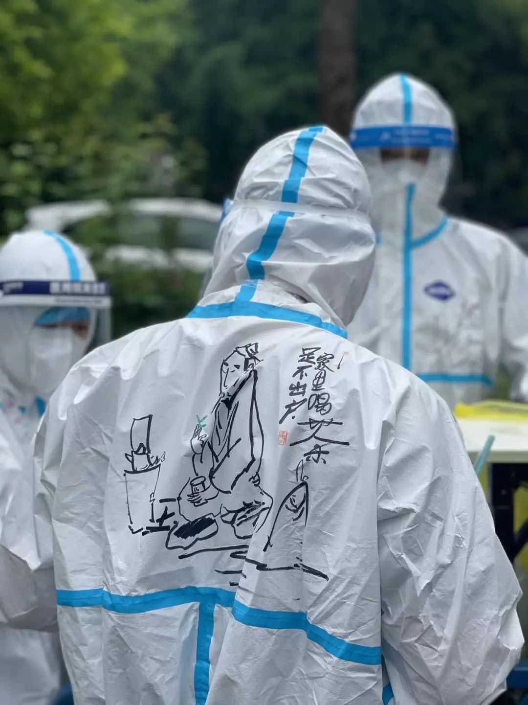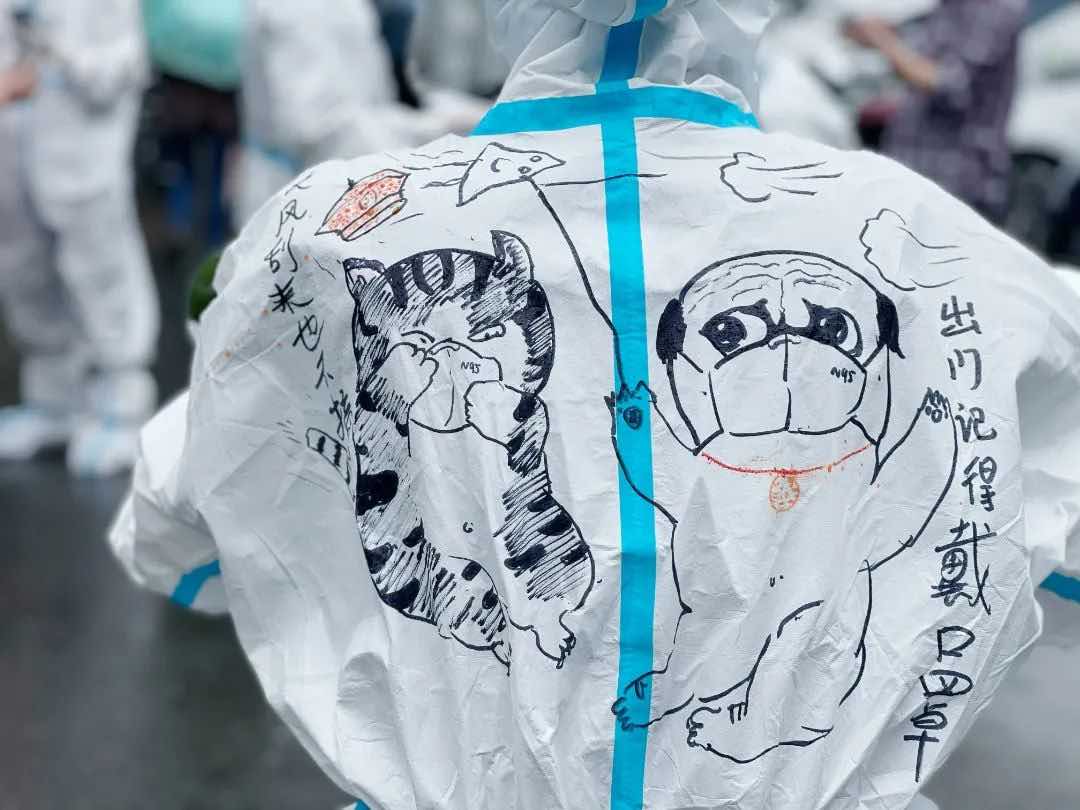 隨著小區核酸篩查順利完成,防護服結束了它們的使命,這些僅有幾個小時“保質期”的手繪也令大家尤為不舍,但其中所傳遞的積極向上的抗疫精神,和這些畫作一樣,早已留在每個看過它們的人心中。