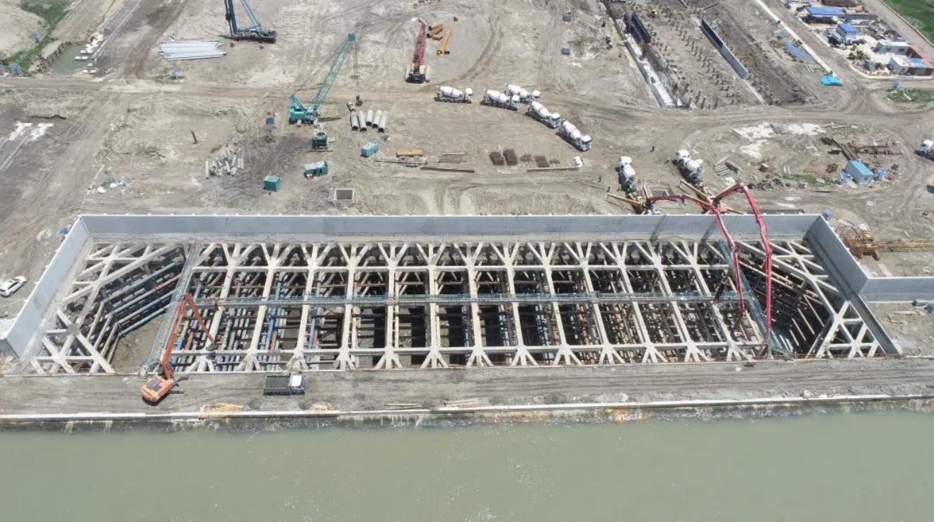 船塢塢口基坑開挖深度為16.15米,面積近4700平方米。首段塢口底板澆筑厚度為1.2米,面積超過860平方米,澆筑量約1100立方米。在施工過程當中,項目團隊還解除了因基坑開挖到底、項目停工帶來的重大安全隱患,克服了防疫壓力大、物資供應緊張等各種困難。目前,工程將進入塢口主體結構施工。