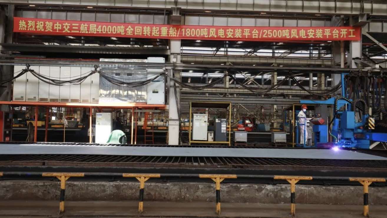 這次開工的3艘船舶具有風場高生存率、高作業效率的特點。4000噸起重船以單樁、導管架施工為主,兼顧海洋工程起重作業,預計明年7月31日交付。1800噸、2500噸平臺船具備20兆瓦級海上風機安裝能力,預計明年9月30日前交付。