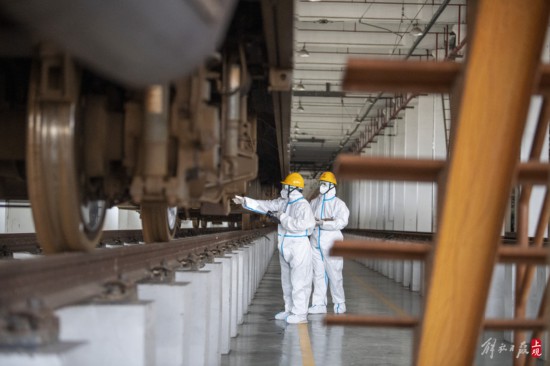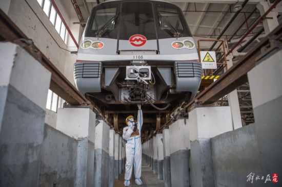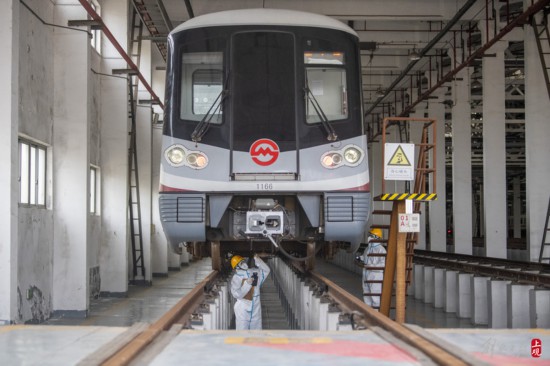 上海地鐵維護保障有限公司車輛維護分公司工作人員正在檢查車輛狀況。