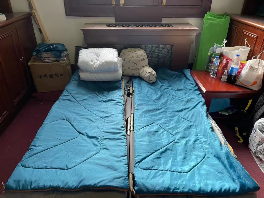 擔心的事還是發生了,一位志愿者不幸感染了新冠,得知確診的消息,我們都崩潰了。大家既怕自己感染,更怕自己回家傳染給家人。那一晚,同事們以紙板箱為床,都在居委會活動室打起了地鋪。為了防止傳染,苗苗也被臨時安置到了其他地方。