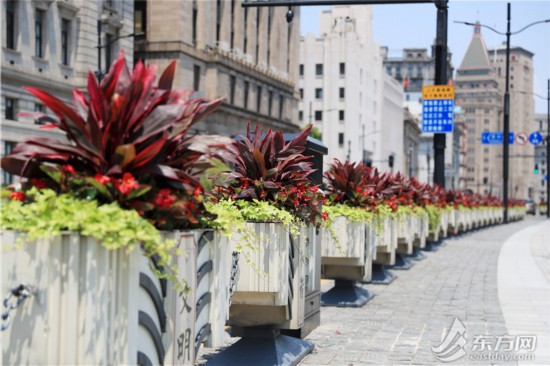 東方網記者柏可林5月17日報道:近日,外灘景觀綠化裝飾一新,外灘沿線綠地、花箱、花壇等綠化養護工作也在有序進行中,以更具活力的面貌,迎接復工復產、復商復市。