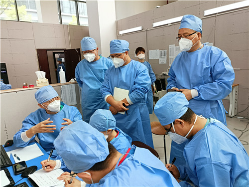 3月30號,我們來到了位于上海奉賢青村鎮的方艙醫院,工程正處于掃尾階段,領隊汪潔副院長立即組織我們和施工方實地進行演練。大家現場巡視了方艙的出入口,各個樓層的通道,醫護及病人工作生活的場所,從醫學角度提出了苦干條的改進意見,經過幾十小時不眠不休的連續苦戰后,在4月3號收治了第一批病人。