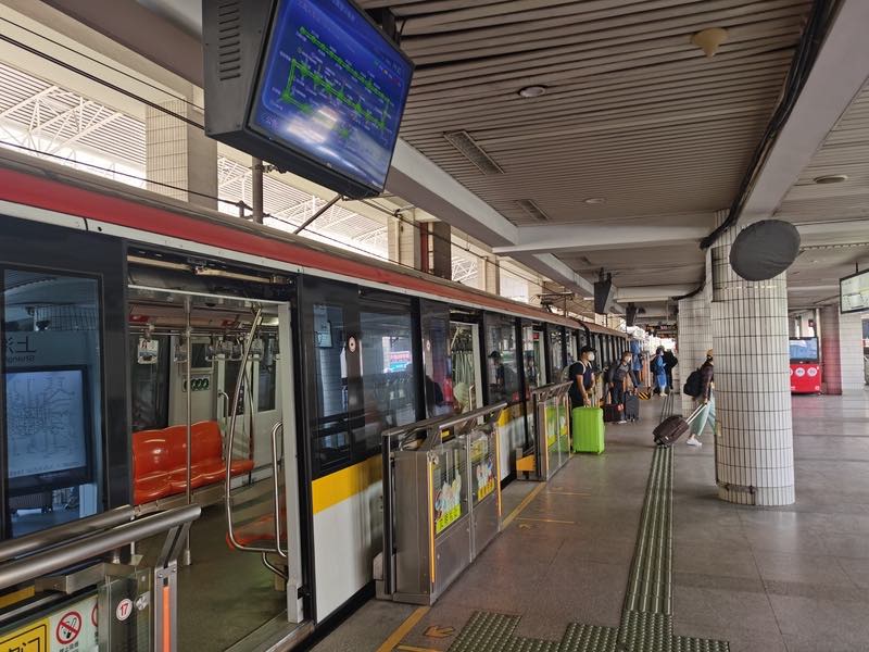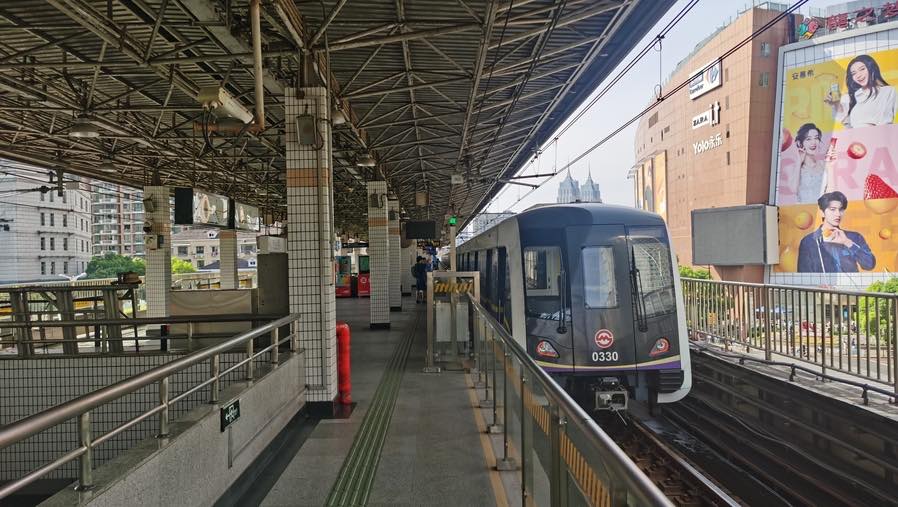 15時左右,記者來到3號線中山公園站,站臺上只有七八位乘客,一些是前往上海站,一些是去虹橋路站轉乘10號線,轉道虹橋火車站。一對父子正在站臺的地鐵線路上研究,如何轉乘10號線去南京東路。