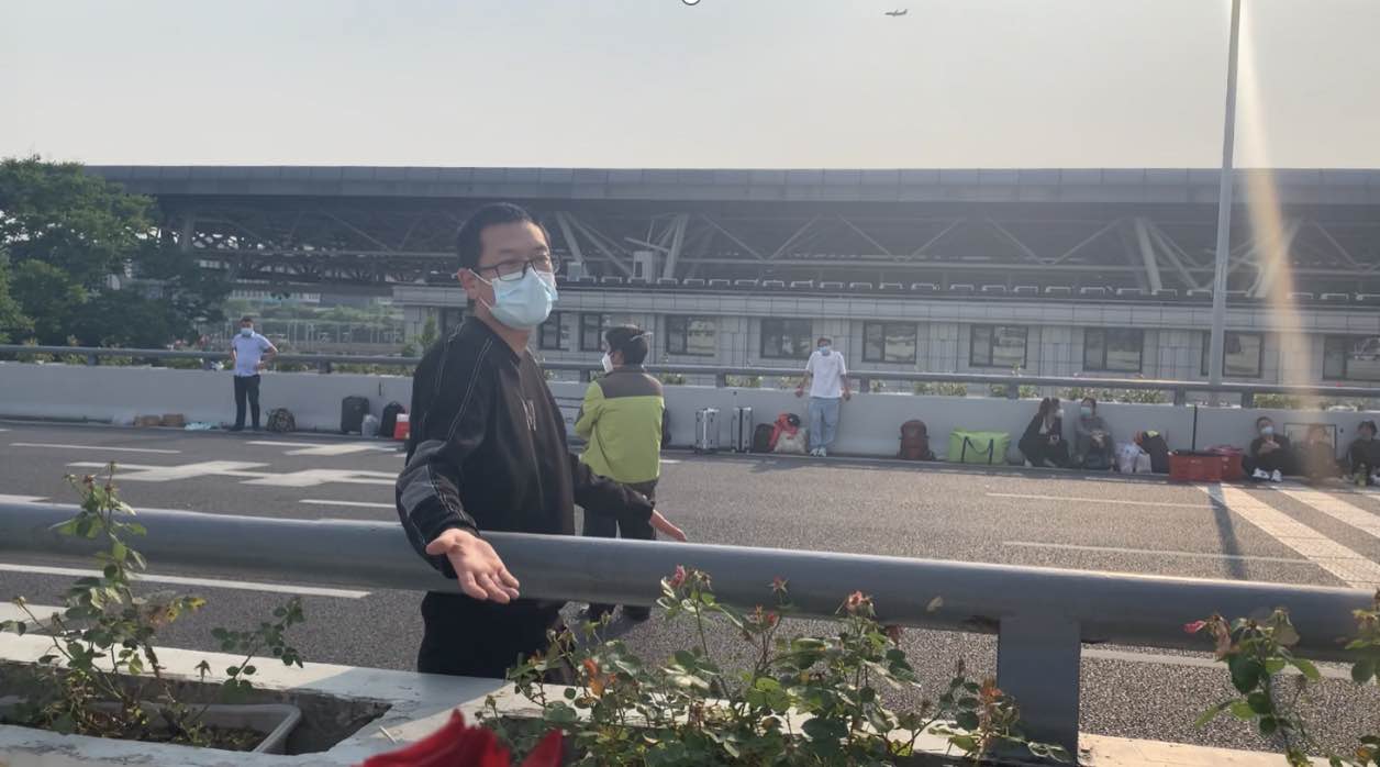 一位在青浦區開超市的大哥,今天來送外甥回合肥老家。因為進站道路擁堵,外甥在1公里外就下車步行,他跟著車流一點一點向前開。3月初,外甥來滬投靠他,原本想找個實習機會,但遇上疫情,一直被封控在家!跋嗵庍@么多天,挺舍不得!蓖馍谋秤,他有些失落。