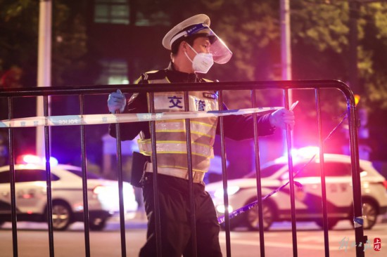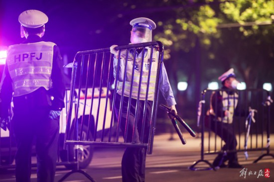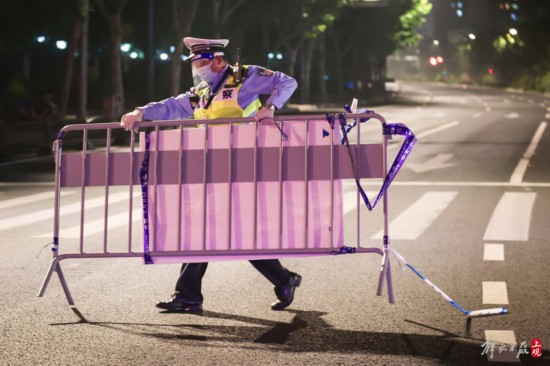 黃浦公安拆除斜土路瑞金南路路口的臨時隔離設施。