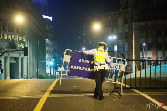 黃浦公安拆除四川路橋上的臨時隔離設施。