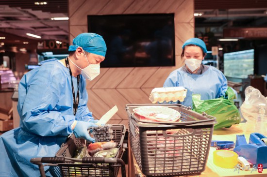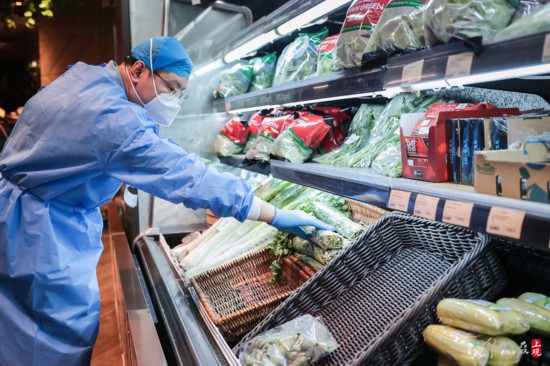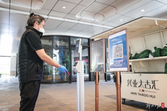 2022年5月22日,南京西路商圈部分重點商場、超市、專賣店有條不紊地進行復工復市的各項準備。